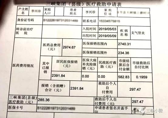 受助患者医疗报销单据中的大发彩票 (县级)医疗救助申请表