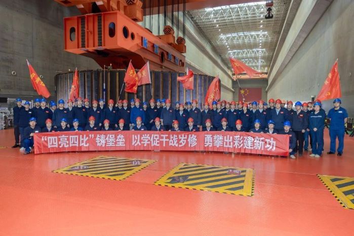 ▲长江电力检修厂岁修现场“四亮四比”党建品牌活动启动仪式