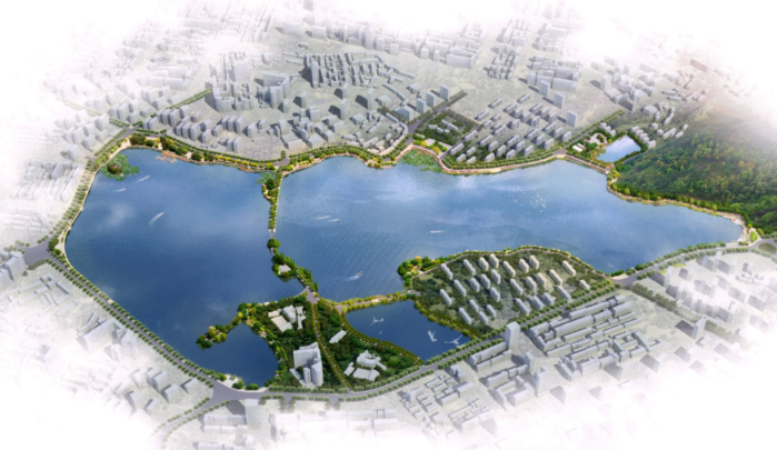 南门湖、甘棠湖临近长江,是九江市中心城区极为重要的水体,犹如浔城“双眸”,承载千年文脉。两湖综合治理工程,着重解决沿线排口众多,溢流频发,污水厂进水浓度偏低、水体蓝藻频发等问题,规划开展环湖排水系统工程、补水工程、清淤及水生态修复工程、调蓄池及雨水循环中心工程、岸线恢复及景观提升工程。