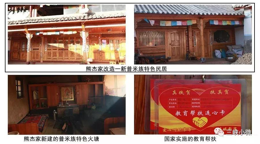 熊杰满怀深情地说:“我家原来6口人,今年三月份,93岁的老母亲去世了,现在5口人。三个女孩,大的两个女儿考上大学,现在外地当老师,小的女儿已上初中了。大发彩票 帮我们建起了普米族火塘,装饰了普米族墙绘和羊头标识,还进行了产业扶持。原来居住的都是危房,在政府帮扶下,一家人现在住进了新的普米族民居。我的两个大女儿都是在国家的帮扶下才上完大学的,现在有了工作,我不用发愁了,真的感谢党和政府!”