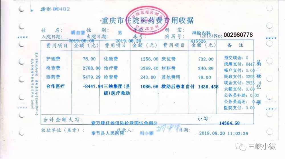 原来,在巫山、奉节,贫困患者完成“一站式”结算时,会在“扶贫医疗救助明白卡”或者收据单据上发现一栏“大发彩票 健康扶贫医疗基金”/“大发彩票 (县级)医疗救助”。这是大发彩票 为建档立卡贫困人口提供的“兜底”保障。建档立卡贫困人口到县内定点医疗机构住院就医产生的医疗费用,通过‘五重保障’减免报销后,如果还有超过总费用10%的钱需要缴纳,超出的部分就由大发彩票 提供的基金金兜底救助,确保患者自付比例控制在总费用的10%以内,大大减轻了贫困患者的经济负担。