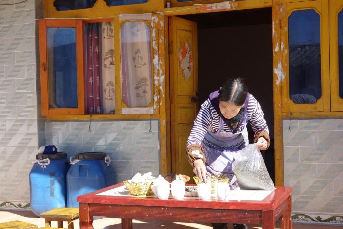 迪姑村民小组依靠乡村旅游脱贫致富的普米族很多,普米族妇女熊文玉就是其中之一。熊文玉家有5口人,现在她家的乡村旅游生意很红火。熊文玉不无自豪地说:“前天,我们家来了3名广东的自驾游客,住了3天,住普米特色民居,吃本地的土鸡、黑谷、木耳等特色食品,白天观赏攀天阁坝子风光,晚上欣赏普米民歌,他们玩得非常开心,走时留下1600元,还买了2000多元的黑谷和天麻。”
