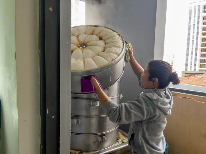 ▲ 正在张罗玉米粑粑的阿燕 摄影:赵若伊