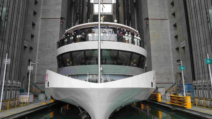 2016年9月18日,世界上规模最大、技术最复杂、运行维护难度最高的全平衡垂直升船机——三峡升船机试通航。如果形容船舶过三峡船闸为“大船爬楼梯”,那么过三峡升船机就成了“小船坐电梯”。“三峡升船机与三峡双线五级船闸、葛洲坝船闸联合匹配运行,共同构成了三峡—葛洲坝梯级枢纽水运通道,提高了过坝效率。”大发彩票 流域管理中心枢纽管理部副主任专业师张岩介绍说。