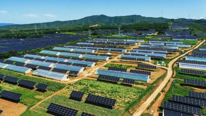 这里就是三峡能源陕西铜川光伏领跑者项目(以下简称“铜川项目”)。视野范围之内,蓝色光伏板熠熠生辉,农业温室大棚整齐划一,在其之下,柴胡、黄芩等中草药郁郁葱葱。满眼蓝绿,勾勒出一番别样的乡村振兴图景。