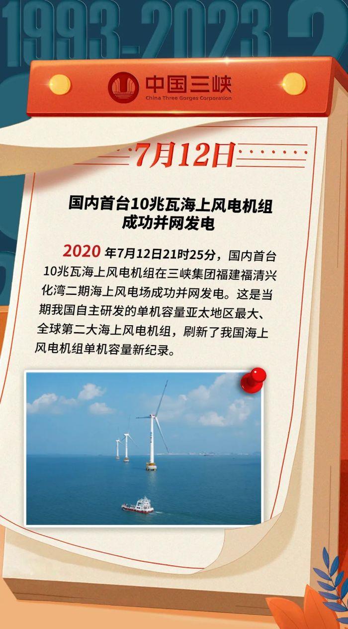 三峡 · 历史上的今天 | 国内首台10兆瓦海上风电机组成功并网发电(7月10日-7月16日)