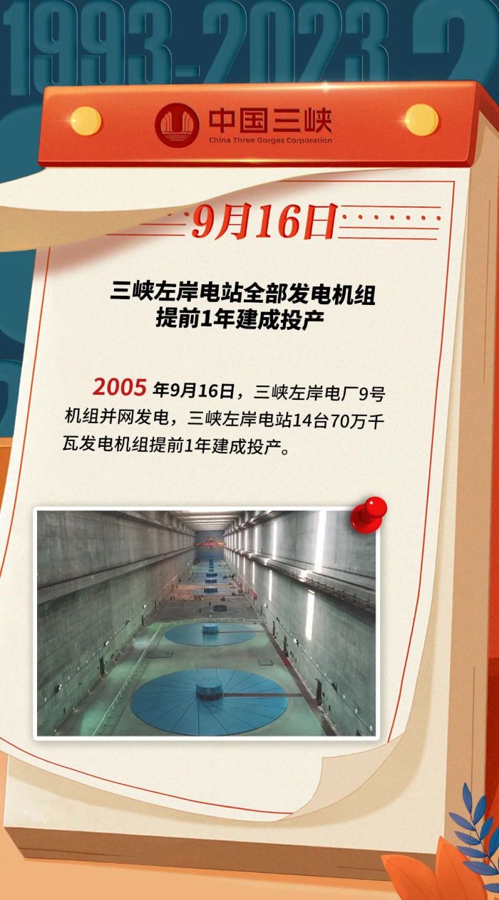 三峡 · 历史上的今天丨(9月11日-9月17日)三峡左岸电站全部发电机组提前1年建成投产