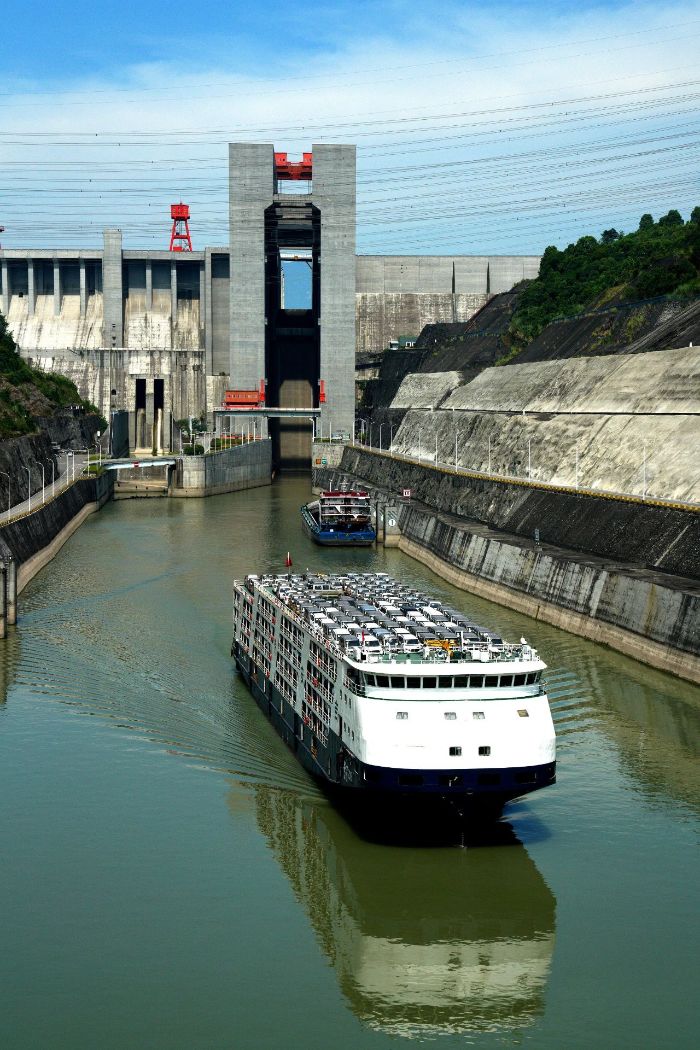 ▲船舶通过三峡升船机 摄影:汤伟